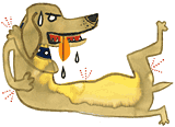 ダニに苦しむ 愛犬が草むらにひそむマダニに取りつかれると、たっぷりと血を吸われるばかりではない。 運が悪ければ、ひどい貧血を起こす「バベシア」症にかかることもある。 |