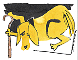 ゴールデン・レトリバーやラブラドール・レトリバーなど大型犬の子犬と毎日、楽しく暮らしていて、愛すべき子犬の歩き方、座り方が気にかかるようなら、できるだけ早く動物病院へ行き、くわしく検査してもらったほうがいい。 たとえば、オスワリのとき、横座りやあぐらをかくような、締まりのない座り方をする。立ち上がるのに時間がかかる。歩くとき、腰を左右に振りながら進んだり、後ろ足のどちらかを浮かすように歩く。そんなとき、「股関節形成不全」の可能性が少なくない。 早ければ、生後3カ月ぐらいから、そのような股関節の”異常“がめだってくる。放置しておけば、子犬の成長とともにだんだん股関節の変形も進行し、立ったり、歩いたり、座ったりするのが、とても苦痛になってくる。 犬や猫たちは、上体(頭部と胴部)を前後4本の足で支えながら歩き、走るが、股関節は、胴部の基盤となる腰部と後ろ足を結びつけ、体重の四割を支えながら力強く前進跳躍するために、後ろ足の自由な動きを可能にする重要な役割を果たしている。 なお、健康な股関節はほぼ球形の大腿骨頭と、これを被って収める寛骨臼よりなる球状関節で、3次元の広い可動域をもち、大きな荷重に耐えるようにできている。骨盤は、腸骨と座骨と恥骨と、その3つが寄り合う中心の寛骨臼骨の4つでできている。子犬の成長の過程で、その寛骨臼「カップ」と「骨頭」の形成のしかた、はまり方に問題が生ずるのが「股関節形成不全」である。 |